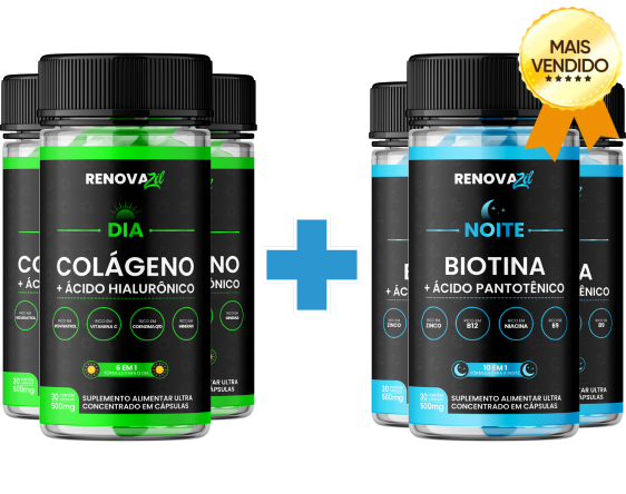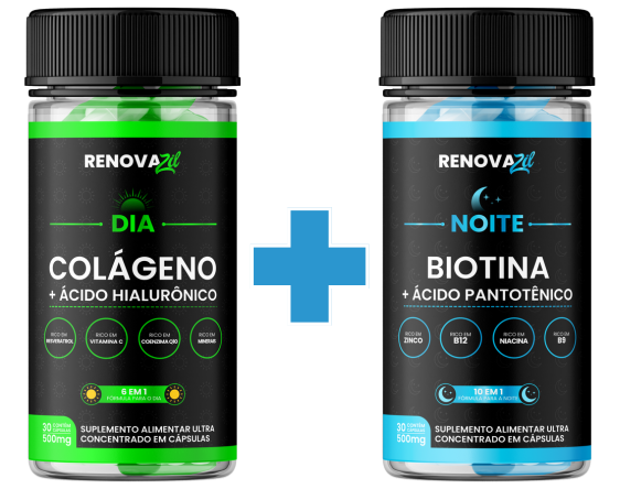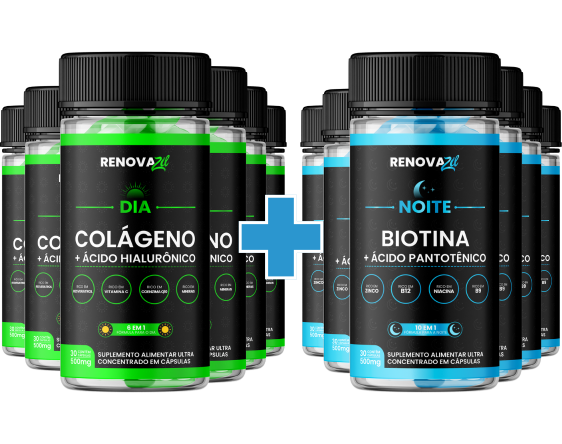 Modo de uso: Indicamos o uso de 1 cápsula ao dia de manhã ao acordar do Renovazil Dia, e 1 cápsula ao dia de noite antes de dormir do Renovazil Noite, nosso produto é um combo perfeito para pele.